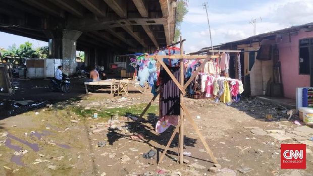 Lapak-lapak semi permanen yang berdiri acak tepat di bawah lindungan badan tol, menyambut CNNIndonesia.com ketika mengunjungi Kampung Bingung pada Kamis (23/1) lalu.